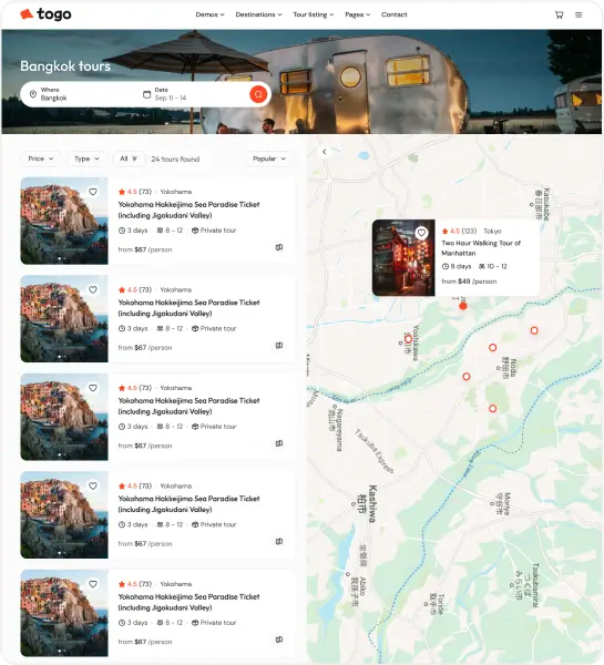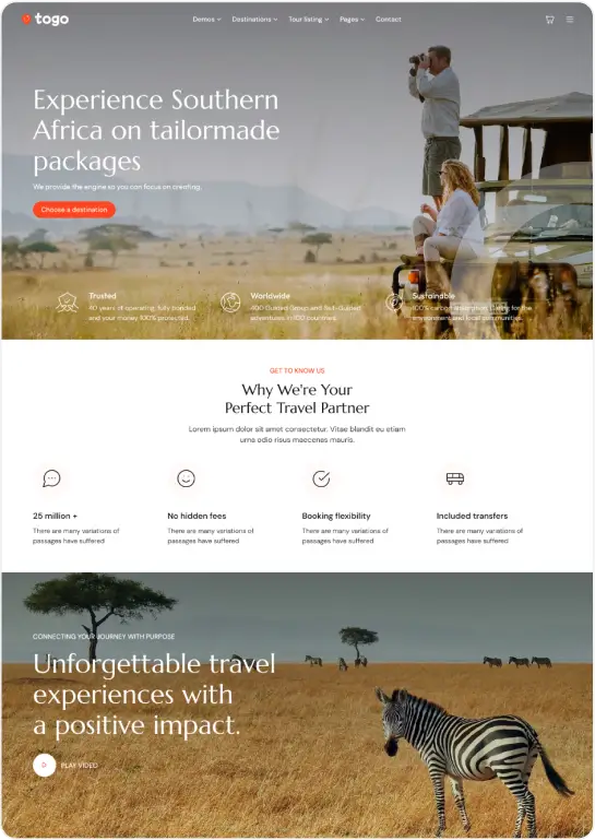 Agencies, tour operators looking to create a professional travel marketplace or directory can benefit from the Togo theme.