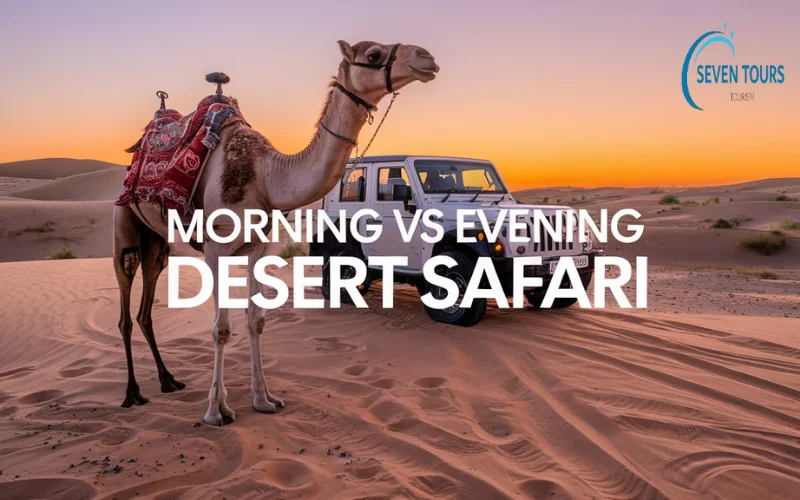 Morning desert safari: This suits those who are early risers and adventure seekers at heart, as the early hours of the day are the best to enjoy the desert and the soft easy breeze of the morning. This tour usually begins around sunrise, with hotel pickups by 7:00 AM, and runs for approximately 4–5 hours.
