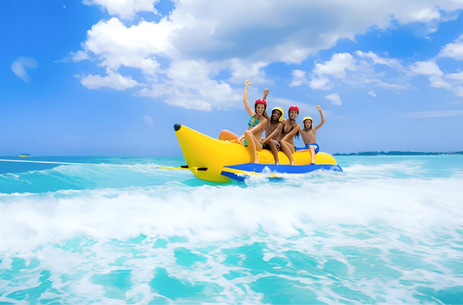 Experience the thrill and excitement of a Banana Boat Ride! Hold on tight as you and your friends ride the waves on this inflatable banana-shaped boat. With a powerful speedboat pulling you along, you’ll feel the rush of the wind and the spray of the water as you try to stay balanced and avoid falling into the ocean. Perfect for groups of friends or families, this adrenaline-pumping activity is a must-try for any beach vacation. So grab your sunscreen and get ready for an unforgettable adventure with a Banana Boat Ride!